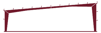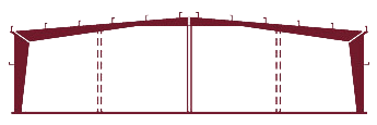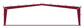 WRF buildings provide for the widest possible spans without interior columns. Due to the use of tapered members, this is the most economical framing style. This frame is ideal where maximum available clearances are required in the center of the buildings.